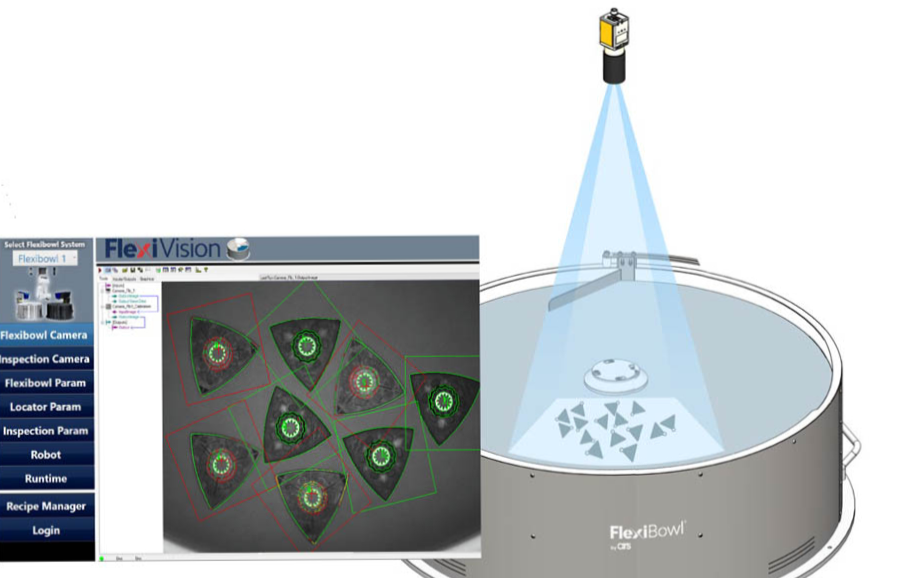 Podajnik FLEXIBOWL jest kompatybilny z każdym robotem i systemem wizyjnym.
